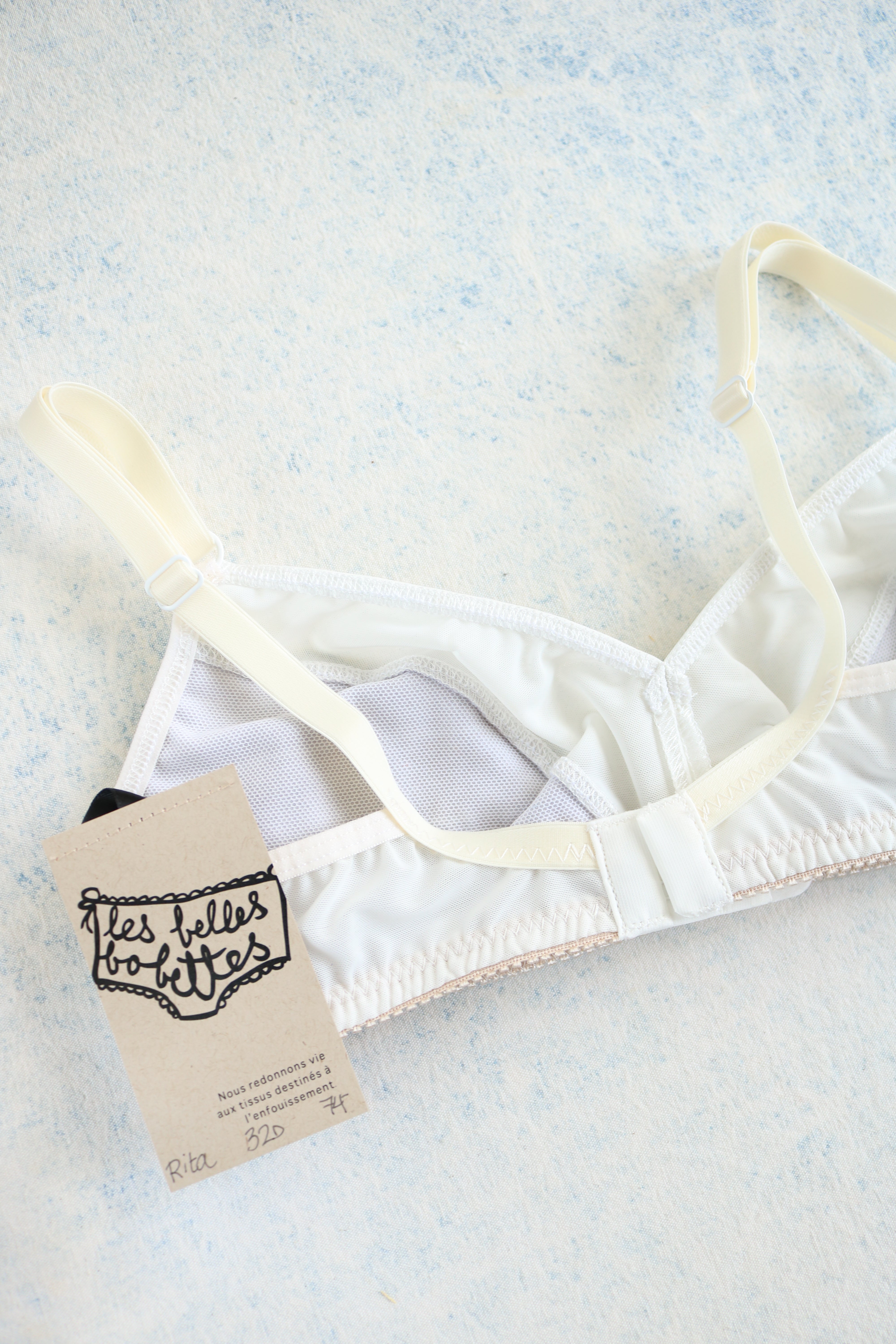 Notre Bralette classique RITA est faite à 100% tissus surcyclés.