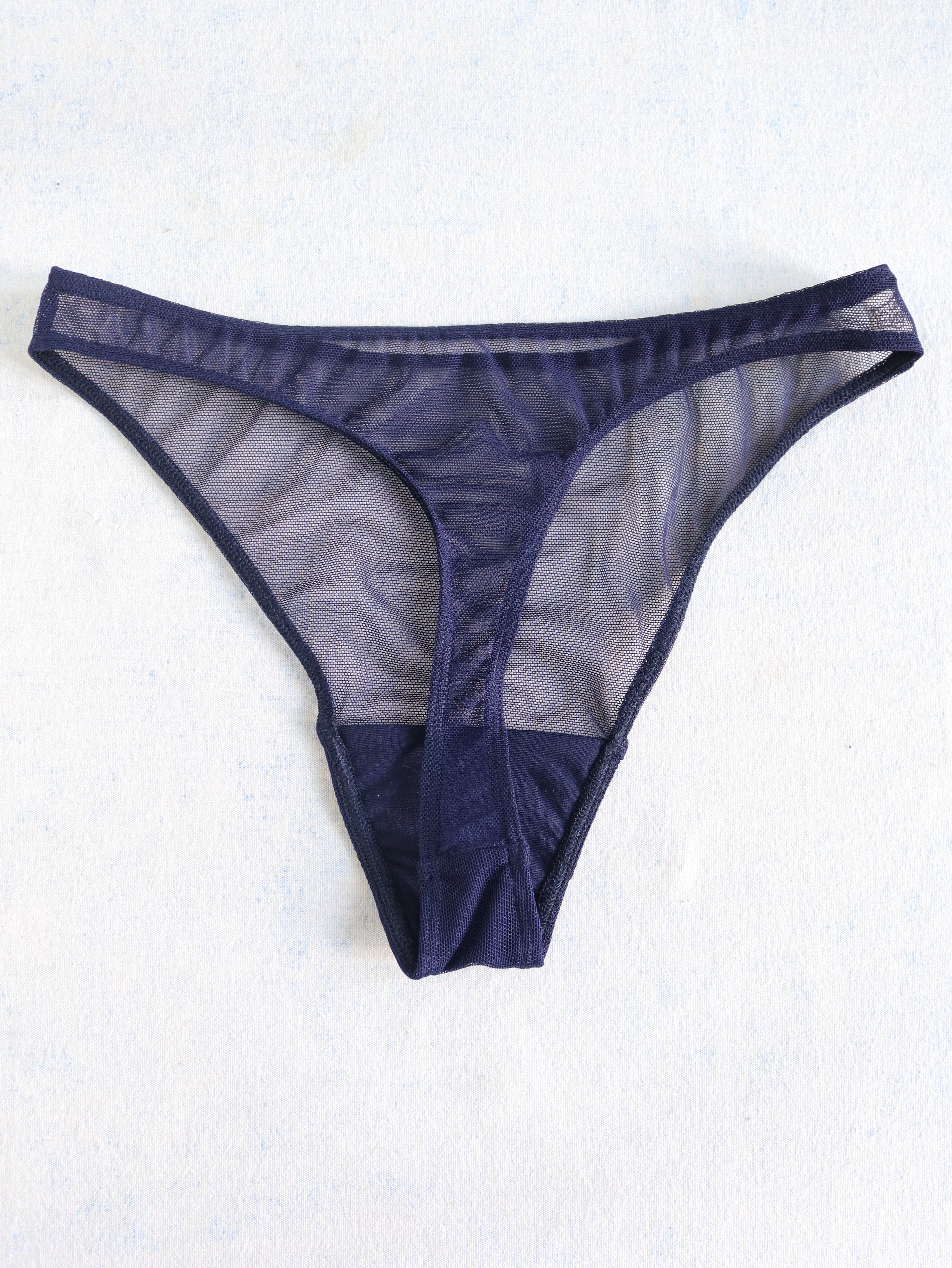 La culotte tanga est faite à 100% de tissus surcyclés. (LA PHOTO démontre une culotte cheeky)Elle sera réalisée suivant votre commande. C'est la bobette la moins couvrante de tous nos modèles.